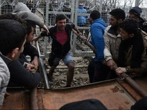 Μεγάλη ομάδα προσφύγων -πολλοί με τα υπάρχοντά τους ανά χείρας- κατέλαβαν νωρίτερα τις σιδηροδρομικές γραμμές, ενώ ορισμένοι κινήθηκαν προς το μεταλλικό φράχτη πετώντας πέτρες και ζητώντας να τούς επιτρέψουν οι αρχές της γειτονικής χώρας τη διέλευση.