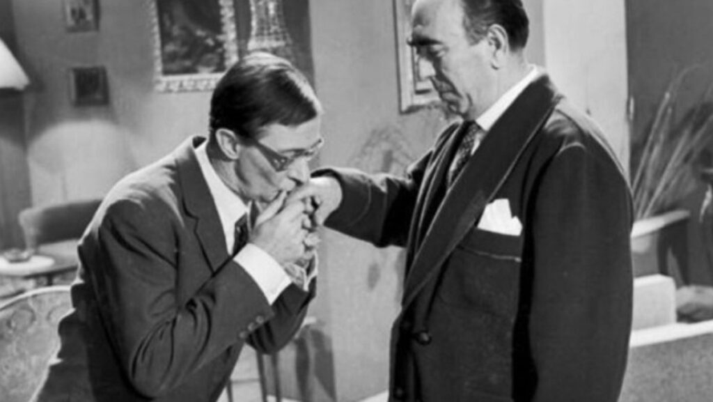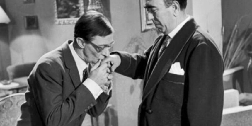 Πριν φτάσουμε, όμως, εκεί, ας πούμε μερικά πράγματα για την ταινία. Στην επίσημη ιστοσελίδα της Φίνος αναγράφεται η πλοκή: «Ο Τιμολέων, ένας πολύ έντιμος άνθρωπος, βρίσκει στο δρόμο το πορτοφόλι ενός απόστρατου στρατηγού και νυν διευθυντή μεγάλου οργανισμού. Αποφασίζει να πάει αμέσως σπίτι του για να το παραδώσει, χωρίς βέβαια να γνωρίζει ότι στο πορτοφόλι έχει μέσα ένα γράμμα που αποδεικνύει μια απάτη που αφορά τον γαμπρό του στρατηγού. Στο σπίτι τον υποδέχεται η γυναίκα του στρατηγού, η οποία είναι και η μόνη που γνωρίζει για την απάτη του αδελφού της, και προσπαθεί με νύχια και με δόντια να πάρει στην κατοχή της το πορτοφόλι. Όταν επιστρέφει ο στρατηγός στο σπίτι, εντυπωσιάζεται από την τιμιότητα του Τιμολέοντος και τον προσλαμβάνει στον οργανισμό, με σκοπό να ανακαλύψει κάθε παρασπονδία που μπορεί να γίνεται εις βάρος του»…