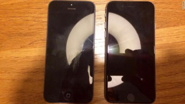 Η καινούρια συσκευή- μινιατούρα στη συγκεκριμένη φωτογραφία βρίσκεται τοποθετημένη δίπλα σε ένα παλαιότερο μοντέλο, που μοιάζει να είναι το iPhone 5, προκειμένου να μπορούν οι ενδιαφερόμενοι να προβούν στις απαραίτητες συγκρίσεις.