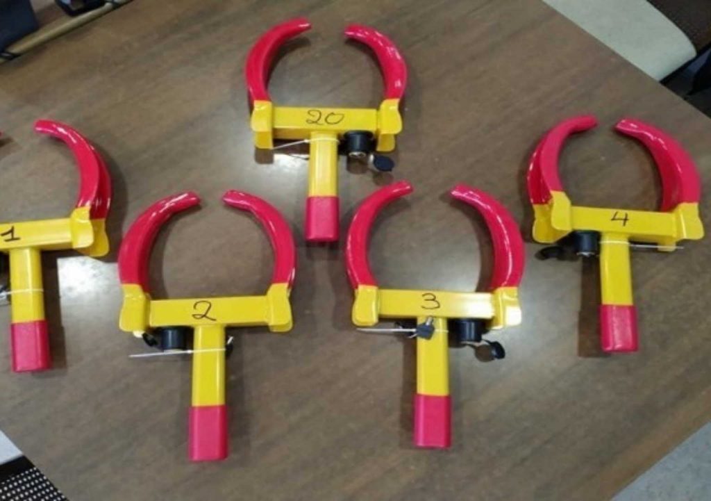 Η δημοτική αστυνομία του κεντρικού δήμου παρέλαβε, σήμερα, καινούργιου τύπου τροχοσφιχτήρες, που θα τοποθετούνται από την επόμενη εβδομάδα στις ρόδες των Ι.Χ. αυτοκινήτων, που είναι παράνομα σταθμευμένα. Οι οδηγοί θα πρέπει να επικοινωνούν με τη δημοτική αστυνομία ώστε να απαλλάσσονται από τη «δαγκάνα».