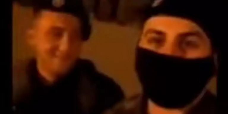 Στο βίντεο – που αναπαράγεται και από αρκετά sites – αποτυπώνονται δύο νεαροί, ο ένας φορά στολή παραλλαγής και ο δεύτερος είναι ντυμένος στα μαύρα. Και οι δύο φορούν στο κεφάλι τους μπερέ και μιλούν στην κάμερα άπταιστα αλβανικά.