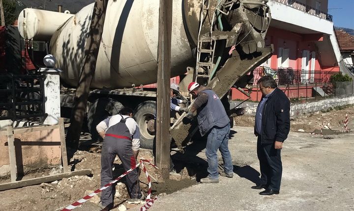 Στην ΝΕΑ ΠΥΛΗ γίνεται πλακόστρωση πεζοδρομίων, όπου υπάρχει ανάγκη.