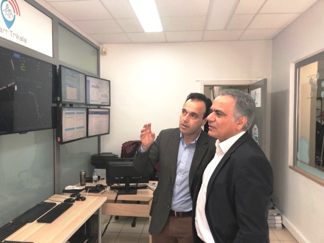 Ο κ. Σκουρλέτης ξεναγήθηκε στο κέντρο ελέγχου του Smart Trikala, με τον κ. Παπαστεργίου να παρουσιάζει όλες τις πρωτοπόρες δράσεις στον τομέα βελτίωσης και ελέγχου των υπηρεσιών προς τους πολίτες, της τυποποίησης των αιτημάτων, του Smart Farming, του eΚΕΠ κ.α. Και, βεβαίως, τέθηκε το θέμα της διαλειτουργικότητας Δημοσίου και ΟΤΑ, με αφορμή το πρώτο στην Ελλάδα «ΑΤΜ Πιστοποιητικών», που αναμένει ένταξη στην κείμενη νομοθεσία.