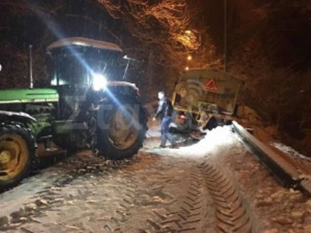 Εκτός δρόμου βγήκε εκχιονιστικό μηχάνημα την ώρα που ξεχιόνιζε δρόμους κασθώς έσκασε λάστιχο.