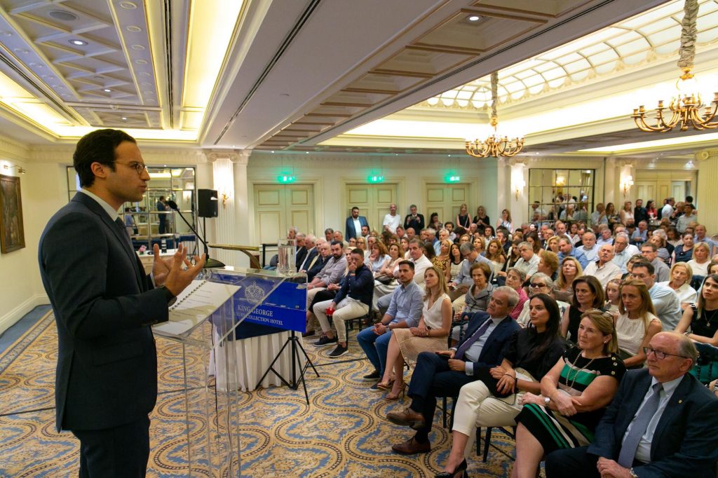 Ήταν τόσο ασφυκτικά γεμάτη η αίθουσα του ξενοδοχείου King George στην πλατεία Συντάγματος (απέναντι από την Βουλή) από τους Τρικαλινούς ετεροδημότες της Αθήνας που έσπευσαν να τον ακούσουν, που τελικά αποδείχθηκε πολύ μικρή για να τους χωρέσει όλους.