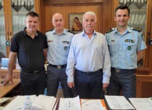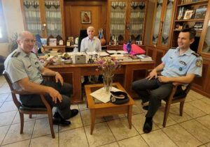 Συνάντηση με τον νέο Αστυνομικό Διευθυντή Τρικάλων κ. Δημήτριο Μήτραινα είχε ο Δήμαρχος κ. Αλέκος Θεόδωρος στο Δημαρχιακό Μέγαρο. Ο Δήμαρχος τον συνεχάρη για την προαγωγή και την τοποθέτηση του στην ηγεσία της διοίκησης της Αστυνομικής Διεύθυνσης Τρικάλων. Τον κ. Μήτραινα συνόδευε ο Διοικητής του Α.Τ Καλαμπάκας κ. Ευάγγελος Λαφαζάνης.