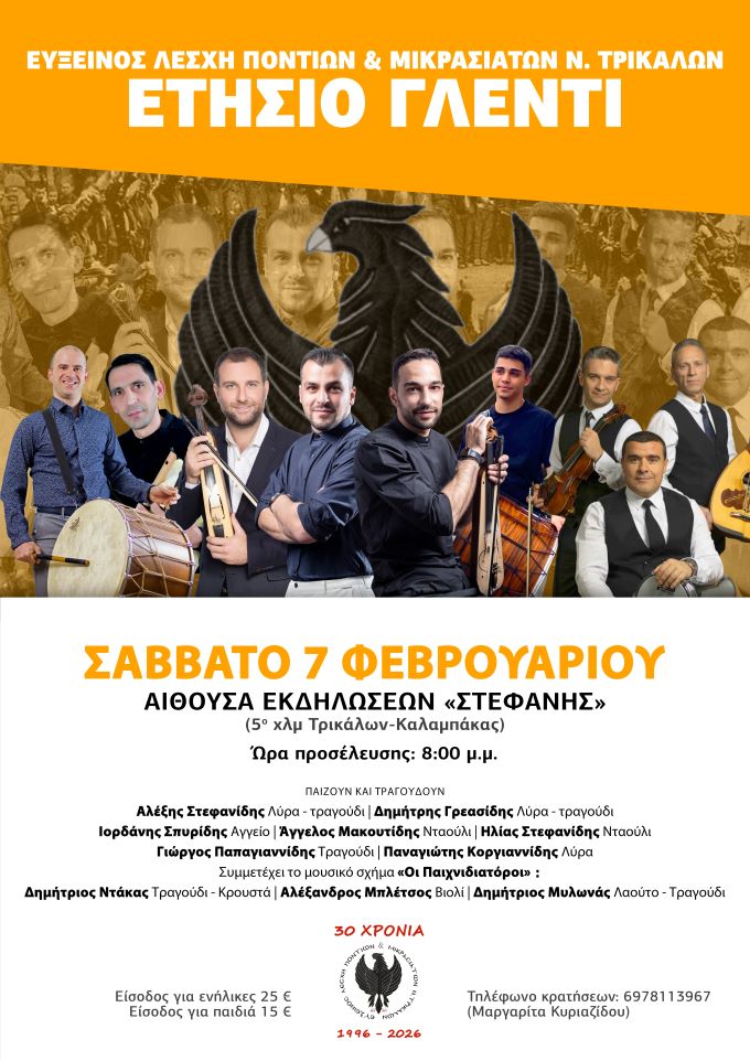 # 30 Χρόνια Εύξεινος Λέσχη Ποντίων & Μικρασιατών Ν. Τρικάλων, 1996-2026