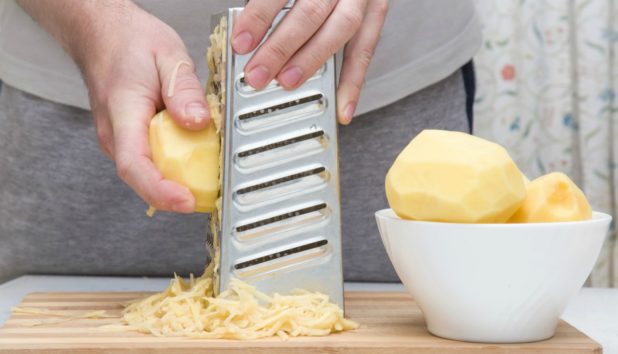 1ος τρόπος: Καθαρίστε με πατάτα Οι ωμές πατάτες περιέχουν οξαλικό οξύ που βοηθάει στο να καθαριστεί καλά ο τρίφτης σας. Τρίβοντας με τη σκληρή και υγρή επιφάνεια της πατάτας ο τρίφτης σας θα καθαριστεί εύκολα και αποτελεσματικά. Είτε λοιπόν έχετε τρίψει τυριά είτε λαχανικά, με αυτό το tip ο τρίφτης σας θα καθαριστεί από όλα τα υπολείμματα.