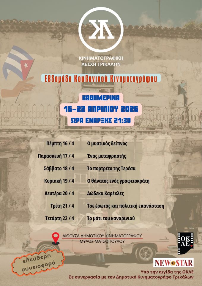 Επτά ταινίες της Κουβανέζικης παραγωγής προβάλλει η Κινηματογραφική Λέσχη Τρικάλων,