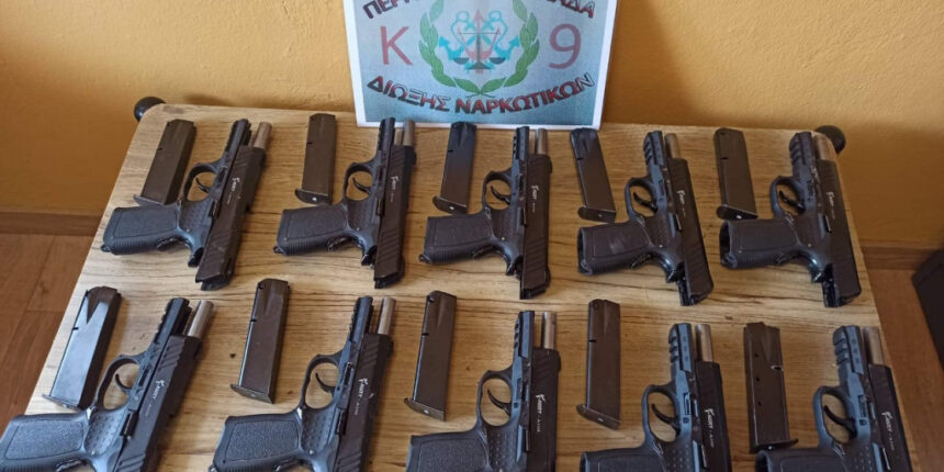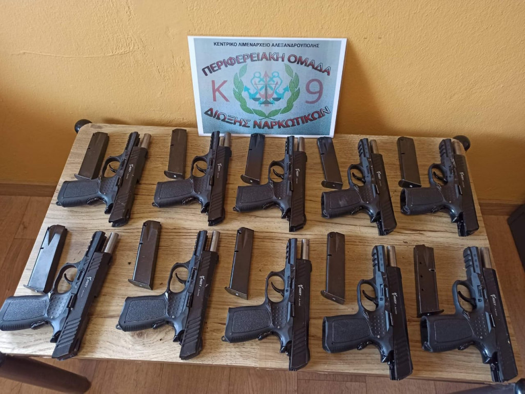 Συναγερμός σήμανε στις 11:00 το πρωί της Παρασκευής στον Έβρο, όταν στελέχη της Περιφερειακής Ομάδας Δίωξης Ναρκωτικών του Κεντρικού Λιμεναρχείου Αλεξανδρούπολης, σε συνεργασία με στελέχη της Υπηρεσίας Δίωξης Ναρκωτικών της Διεύθυνσης Αστυνομίας Κομοτηνής, συνέλαβαν πέντε παράτυπους μετανάστες στην κατοχή των οποίων βρέθηκαν 10 πιστόλια Τουρκικής κατασκευής των 9mm.