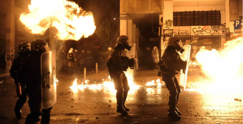 Από τις μολότοφ προκλήθηκε πυρκαγιά σε 3 σταθμευμένα αυτοκίνητα, τα οποία υπέστησαν σοβαρές ζημιές.