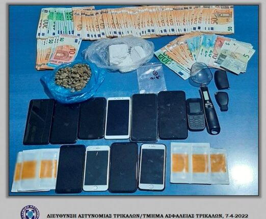 Στο πλαίσιο αστυνομικής επιχείρησης που πραγματοποιήθηκε χθες (06-04-2022) στα Τρίκαλα, από αστυνομικούς της προαναφερόμενης Υπηρεσίας, συνελήφθησαν συνολικά -4- άνδρες, -3- ημεδαποί, ένας από τους οποίους έχων τον ηγετικό ρόλο και -1- αλλοδαπός, σε βάρος των οποίων σχηματίστηκε δικογραφία για εγκληματική οργάνωση και παράβαση της νομοθεσίας περί ναρκωτικών.