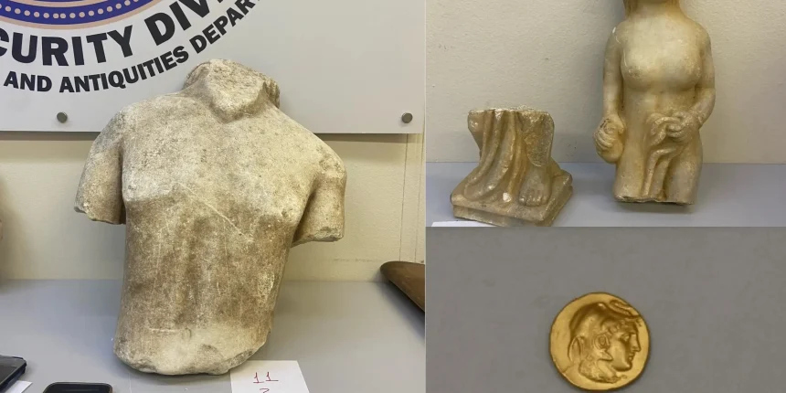 Παράνομη εμπορία αρχαίων κινητών μνημείων απετράπη έπειτα από την σύλληψη 3 μελών εγκληματικής οργάνωσης σε ευρεία επιχείρηση της ΕΛΑΣ που έλαβε χώρα σε Μέγαρα, Πεύκη και Οινόφυτα. Διασώθηκαν σπάνιο νόμισμα και κορμός κούρου της πολιτιστικής μας κληρονομιάς, ανυπολόγιστης οικονομικής αξίας.