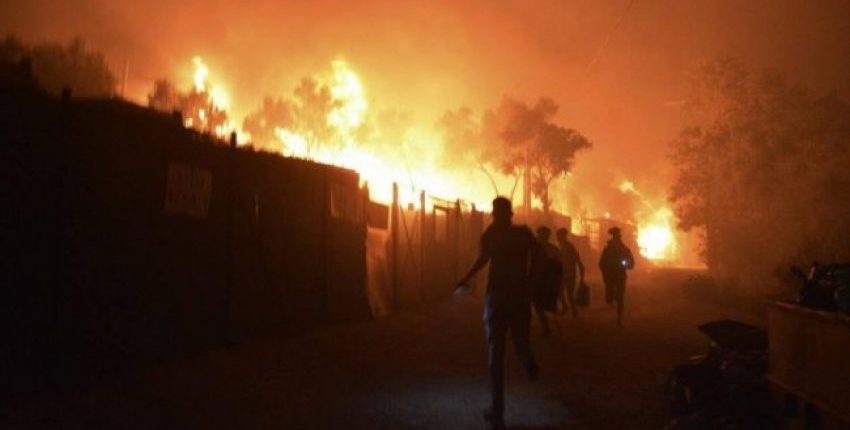Πύρινη κόλαση στη Λέσβο τη νύχτα, καθώς ξέσπασαν ταυτόχρονα φωτιές τόσο περιμετρικά του καταυλισμού της Μόριας όσο και σε δασικές περιοχές της Βατούσας και της Άντισσας του Δήμου Δυτικής Λέσβου.