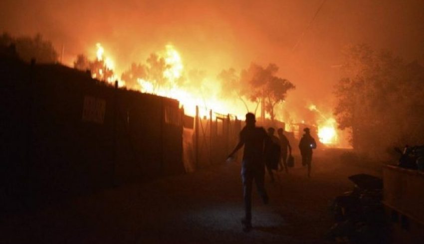 Πύρινη κόλαση στη Λέσβο τη νύχτα, καθώς ξέσπασαν ταυτόχρονα φωτιές τόσο περιμετρικά του καταυλισμού της Μόριας όσο και σε δασικές περιοχές της Βατούσας και της Άντισσας του Δήμου Δυτικής Λέσβου.