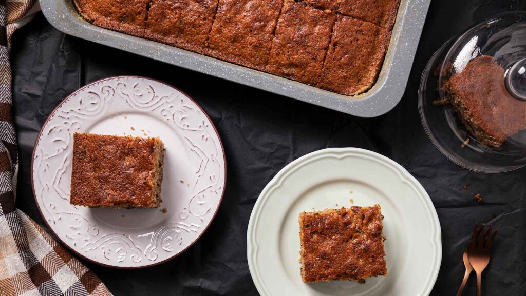 Ψήνουμε σε καλά προθερμασμένο φούρνο στους 170°C στις αντιστάσεις, στην κάτω σχάρα, για 45 περίπου λεπτά, μέχρι να ροδίσει, να φουσκώσει και να βγαίνει καθαρή η λάμα του μαχαιριού.
