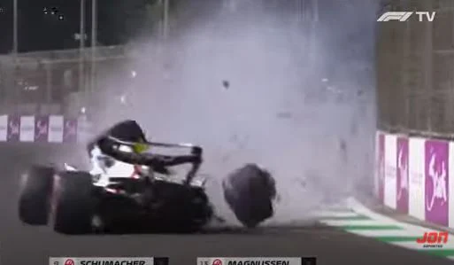 Ο Μικ Σουμάχερ είχε ένα τρομακτικό ατύχημα στην πίστα της Τζέντα κατά τη διάρκεια των κατατακτηρίων της Formula 1 και διέλυσε το μονοθέσιό του.