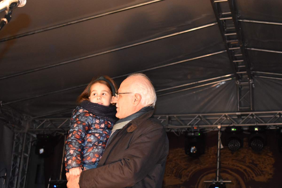 Σε μεγάλα κέφια όμως ήταν και ο δήμαρχος Λαρισαίων που απεύθυνε ευχές και έδωσε το σύνθημα για να ανάψουν τα φώτα του Δέντρου, αλλά αυτή την φορά δεν ήταν μόνος του, το έκανε με την μικρή του εγγονή, την οποία κράτησε στην αγκαλιά του και μέτρησαν παρέα αντίστροφα για το άναμμα του Χριστουγεννιάτικου Δέντρου.