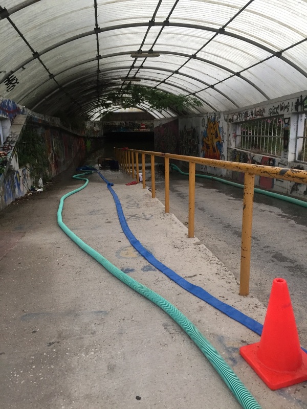 – Τοποθετήθηκαν δύο πρόσθετες αντλίες στην υπόγεια διάβαση προς το κολυμβητήριο, όπου η βροχόπτωση εμπόδισε τη χρήση των υπαρχουσών αντλιών