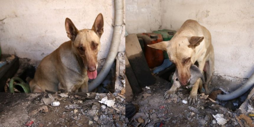 Ακίνητη στο σημείο που ήταν τα κουτάβια της παρέμενε η σκυλίτσα