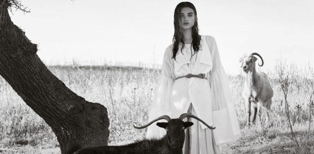 «Ήταν μια πολύ ωραία συγκυρία η παρουσία των ζώων αυτών που βρίσκονται πάνω στο νησί και έτυχε να περνούν από το δέντρο δίπλα στο οποίο γινόταν η φωτογράφιση. Ήρθαν κοντά μας για να σταθούν στη σκιά του και να φάνε λίγα από τα φρούτα που τρώγαμε και εμείς. Έτσι συμμετείχαν σε ένα από τα ευτυχέστατα κλικ που μπορούσαμε να κάνουμε», επισημαίνει στο ΑΠΕ-ΜΠΕ η διευθύντρια της Vogue Greece, Θάλεια Καραφυλλίδου, για να συμπληρώσει με νόημα: «για μένα, το συγκεκριμένο εξώφυλλο είναι όλη η Ελλάδα, τα όμορφα ρούχα που έχουμε από τους Έλληνες και ξένους σχεδιαστές σε ένα τοπίο απόλυτα ελληνικό».