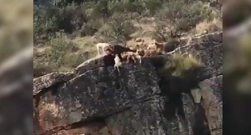 Στο συγκεκριμένο βίντεο, περίπου 12 σκυλιά εμφανίζονται να τρέχουν προς την κορυφή ενός γκρεμού, προκειμένου να πιάσουν ένα ελάφι, έπειτα από σχετική εντολή του ιδιοκτήτη τους, στην περιοχή Κασέρες.