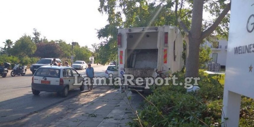 Το απορριμματοφόρο ακυβέρνητο αφου χτύπησε τέσσερα αυτοκίνητα ανέβηκε στο πεζοδρόμιο και σταματησε σε ένα δέντρο. Από καθαρή τύχη δεν παρασύρθηκε κάποιος πεζός ή κάποιος εργαζόμενος της καθαριότητας.