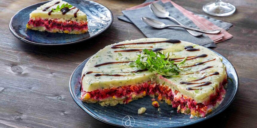 trikaladay.gr / Διατροφή / Φτιάξτε την σαλάτα τούρτα με παντζάρι από την Αργυρώ Μπαρμπαρίγου και εντυπωσιάστε