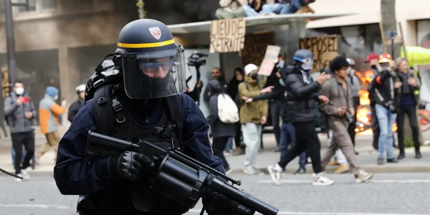 Εντωμεταξύ στο Παρίσι έχουν αρχίσει συγκρούσεις των αστυνομικών με τους διαδηλωτές οι οποίοι έβαλαν φωτιές σε κάδους σκουπιδιών. Μεταξύ των διαδηλωτών είναι και μαθητές λυκείων από πολλές συνοικίες της γαλλικής πρωτεύουσας. Στόχος των διαδηλωτών έγινε και η Ροτόντα (La Rotonde) το γνωστό μπαρ (brasserie για την ακρίβεια) όπου συχνάζει ο πρόεδρος της Γαλλίας και όπου τον Ιανουάριο είχε κάνει το τραπέζι στον γερμανό καγκελάριο Όλαφ Σολτς.