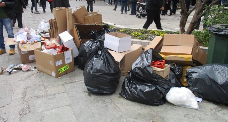 Γεμάτοι σκουπίδια είναι οι κάδοι, τα πεζοδρόμια και οι πεζόδρομοι των Τρικάλων σήμερα.