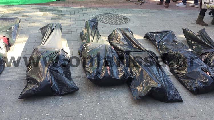 Με μία αιφνιδιαστική διαμαρτυρία το μεσημέρι του Σαββάτου, μέλη της πρωτοβουλίας μπήκαν σε μαύρες σακούλες και ξάπλωσαν στον πεζόδρομο της Κούμα στο κέντρο της Λάρισας, θέλοντας με αυτό τον μακάβριο τρόπο να υπενθυμίσουν το έγκλημα που διαπράττεται καθημερινά με την ανοχή της διεθνούς κοινότητας.