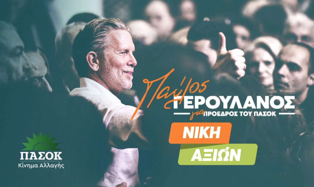 Με ένα συγκινητικό spot-αφιέρωμα στον Ανδρέα Παπανδρέου, στο «όλον ΠΑΣΟΚ», στην ιστορία του Κινήματος αλλά και στο «ΠΑΣΟΚ του μέλλοντός μας», παρουσιάζει σήμερα ο Παύλος Γερουλάνος το κεντρικό σύνθημα της υποψηφιότητάς του, «Νίκη Αξιών», και τη συλλογιστική που οδήγησε σε αυτό.