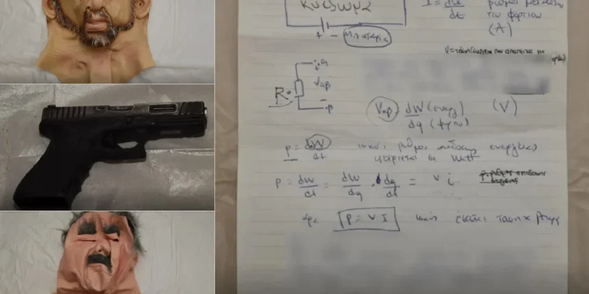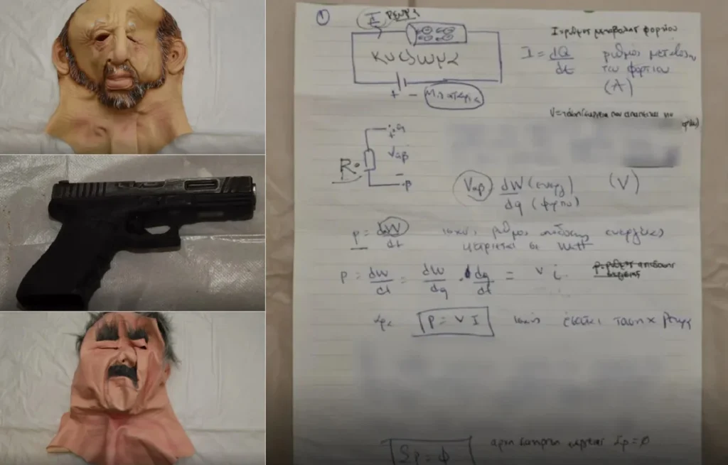 Το πιστόλι, οι σημειώσεις και οι μάσκες που χρησιμοποιούσαν στο διαμέρισμα – γιάφκα στους Αμπελόκηπους έδωσε στο «φως» της δημοσιότητας η αστυνομία.