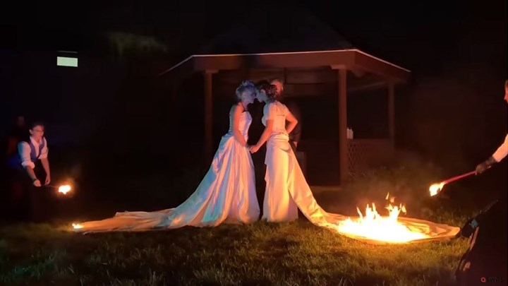 Να ανεβάσουν την αδρεναλίνη θέλησαν δύο γυναίκες που παντρεύτηκαν μεταξύ τους και αποφάσισαν να βάλουν φωτιά στα νυφικά τους. Είναι και οι δύο καλλιτέχνιδες που καταπίνουν φωτιές και διασκεδάζουν με τρικ το κοινό, οπότε αποφάσισαν την ημέρα του γάμου τους να διασκεδάσουν τους καλεσμένους τους με ένα θεαματικό κόλπο.