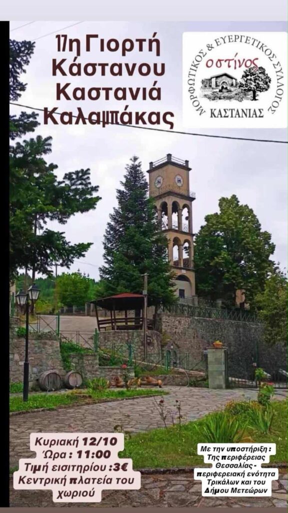 Το διοικητικό συμβούλιο του Μορφωτικού και Ευεργετικού Συλλόγου Καστανιάς «ο Στίνος» σας προσκαλεί στην γιορτή του κάστανου που θα πραγματοποιηθεί την Κυριακή 12 Οκτωβρίου και ώρα 11πμ.