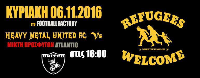 Αυτή τη Κυριακή 6 Νοεμβρίου σηκώνουμε κόκκινη κάρτα στο ρατσισμό, γυρίζουμε την πλάτη στις φωνές μίσους και ξενοφοβίας και παίζουμε μπάλα με την ομάδα των προσφύγων.