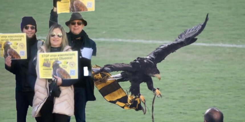 Ο αετός της ΑΕΚ, Οδυσσέας, προκάλεσε πολλές αντιδράσεις στο νέο της ποδοσφαιρικό γήπεδο, την «OPAP Arena» με το …τελετουργικό που γίνεται πριν από κάθε αγώνα.
