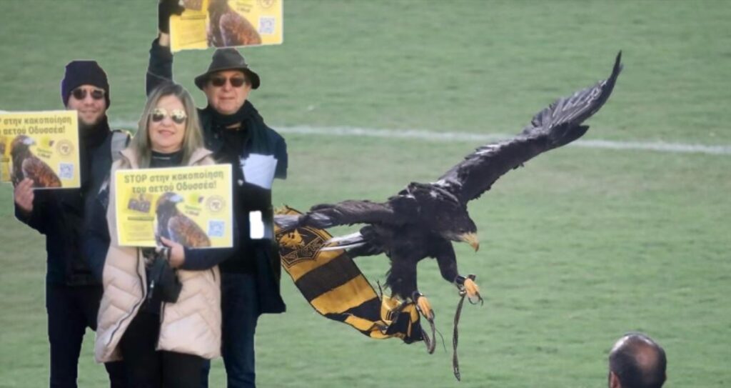 Ο αετός της ΑΕΚ, Οδυσσέας, προκάλεσε πολλές αντιδράσεις στο νέο της ποδοσφαιρικό γήπεδο, την «OPAP Arena» με το …τελετουργικό που γίνεται πριν από κάθε αγώνα.
