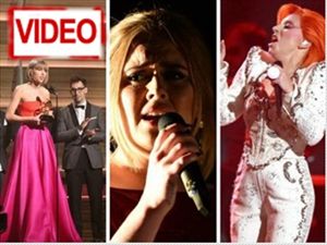 ‘Σικίσιμες’ παρουσίες με τη Ζεντάγια, αλλά και την Λέιντι Γκάγκα να εμφανίζονται με παλαιότερα χτενίσματα του Ντέιβιντ Μπόουι –η Γκάγκα ερμήνευσε θρυλικές επιτυχίες του – την Σουίφτ με το χαρακτηριστικό κόκκινο κραγιόν της και το σύνολο της σε πολύ ζεστά, πλακάτα χρώματα και τη Μπιγιονσέ με τις καμπύλες της…