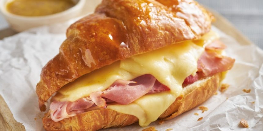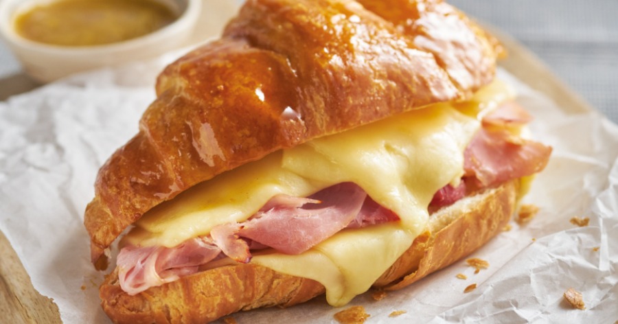 – Για να φτιάξετε το κρουασάν σας απλώστε 1 κουταλιά του γλυκού μουστάρδα στο ένα μισό.
