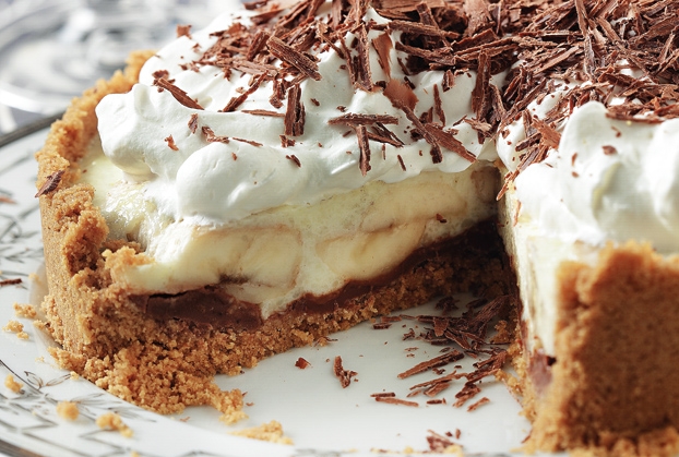 Κάνουμε μία στρώση τις μπανάνες, κομμένες σε λεπτές φέτες.