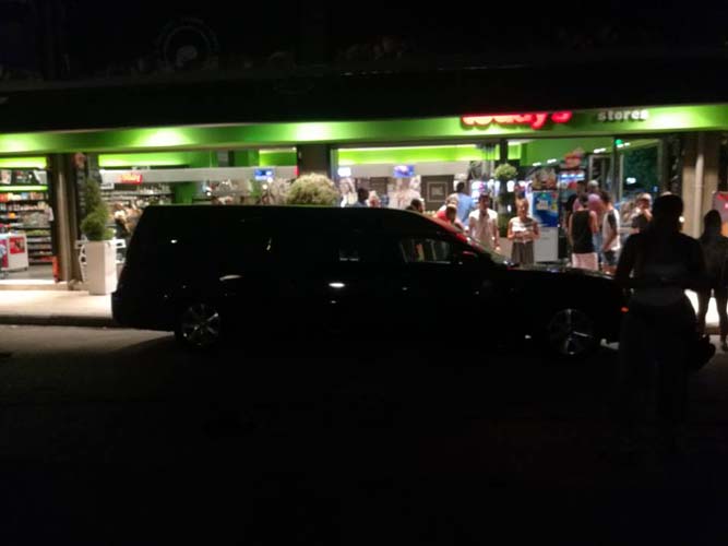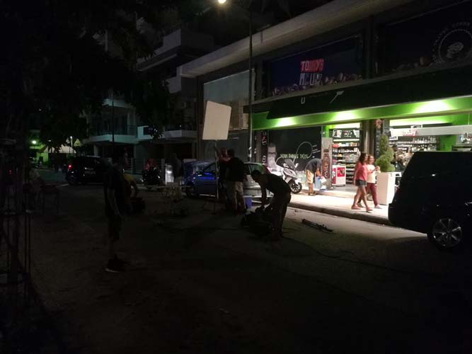 Μάλιστα τα γυρίσματα απαιτούσαν μια τεράστια μαύρη νεκροφόρα η οποία ήταν παρκαρισμένη έξω από το γνωστό Φαστ Φουντ στην οδό Φαρσάλων, όπου ο κόσμος περικύκλωσε το κατάστημα για να παρακολουθήσει πως γυρίζεται η ταινία, αλλά φυσικά και για να δει από κοντά τους γνωστούς ηθοποιούς, με τα κινητά τηλέφωνα να …παίρνουν φωτιά και να καταγράφουν στιγμιότυπα.