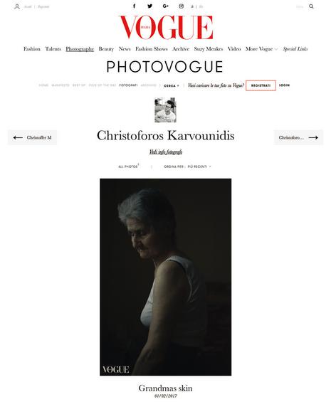 Βλέμμα καθαρό, σπινθηροβόλο, έκφραση ηρεμίας και μια γλύκα στο ρυτιδιασμένο πρόσωπο, αποτυπώθηκαν στον φακό. Η κριτική επιτροπή της Vogue επέλεξε να ανεβάσει στο PhotoVogue δύο φωτογραφίες -δεν αποκλείεται βέβαια στην κατηγορία με το όνομα του Χριστόφορου να μπουν σταδιακά και οι άλλες δύο ή άλλες που θα στείλει αργότερα, με διαφορετικό θέμα- και την αρχική έκπληξη της οικογένειας διαδέχτηκε η χαρά.