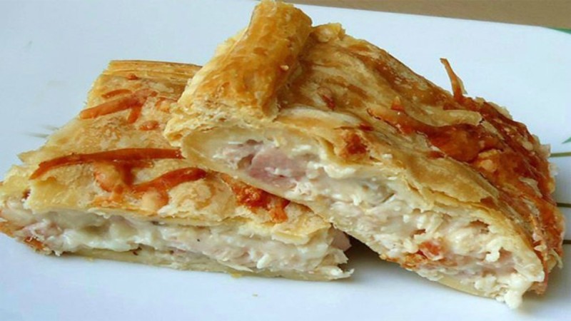 - Ανακατεύουμε το κοτόπουλο, το κρεμμύδι και το ζαμπόν και αλατοπιπερώνουμε.