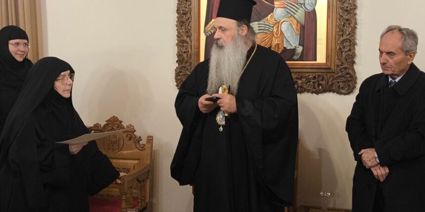 Το περασμένο Σάββατο και ώρα 5 μ.μ., στην Ιερά Μονή Αγίου Στεφάνου Αγίων Μετεώρων, σε μια λιτή τελετή, έγινε από τον Φ.Ι.ΛΟ.Σ. Τρικάλων η απο-νομή του “Βραβείου Φιλίας Τρικάλων” 2024 στην «οσιολογιωτάτη και ελλογιμωτάτη Μοναχή ΘΕΟΤΕΚΝΗ ΑΓΙΟΣΤΕΦΑΝΙΤΙΣΣΑ, η οποία με το σπουδαίο συγγραφικό της έργο συνέβαλε στην ανάδειξη της Ιστορίας των Μονών των Μετεώρων, καθώς και της πολυσχιδούς και διαχρονικής προσφοράς τους στο Έθνος».