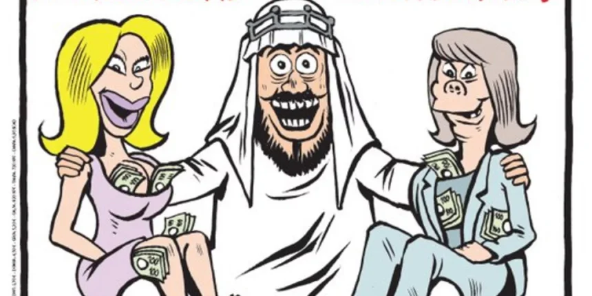 Ευτυχής σαν Καταριανός εμίρης -Με πόρνες και βουλευτές, είναι τα σχόλια στο σκίτσο