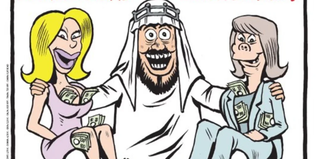 Ευτυχής σαν Καταριανός εμίρης -Με πόρνες και βουλευτές, είναι τα σχόλια στο σκίτσο