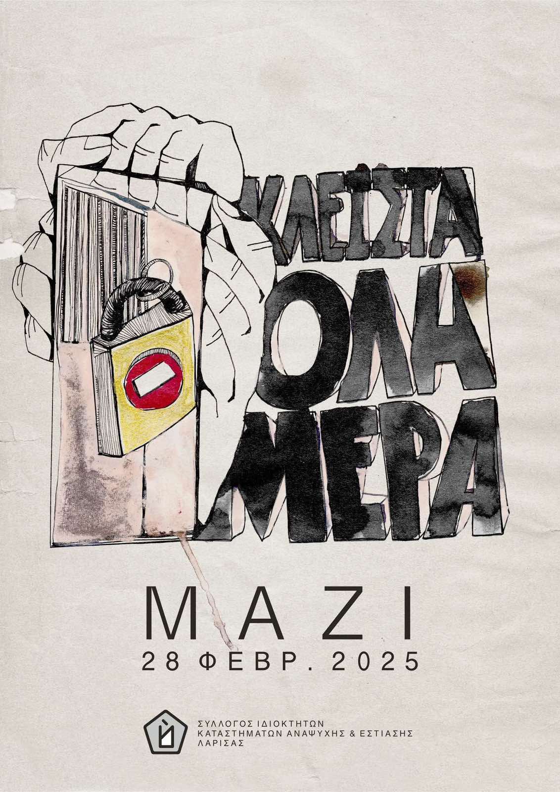 Να κλείσουν τα καταστήματα εστίασης όλη μέρα την ερχόμενη Παρασκευή και να συμμετέχουν στη συγκέντρωση με αφορμή τη μαύρη επέτειο από την εθνική τραγωδία στα Τέμπη, αποφάσισαν οι Λαρισαίοι καταστηματάρχες