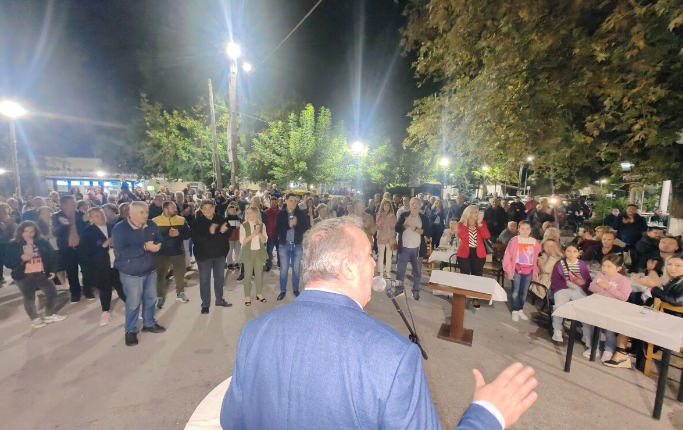 Στο τέλος της ομιλίας του παρουσίασε τους τοπικούς υποψηφίους και κάλεσε τον κόσμο να δώσει ηχηρό παρών στην αποψινή κεντρική προεκλογική ομιλία στην Πύλη.