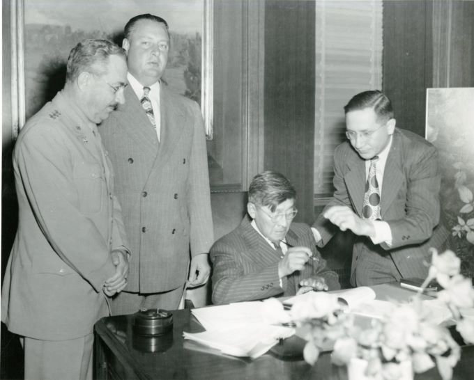 Στην πρώτη, αριστερά όρθιος, ένας ιθαγενής, απ’ αυτούς που θα υπέγραφαν το